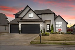Experience luxury and comfort in this elegant four —or five-bedroom home, thoughtfully designed with upscale finishes, in Quail Creek of Bixby, OK. The gourmet kitchen features an oversized island, coffee bar, six-burner gas stove, and walk-in pantry. An ultra-modern marble fireplace anchors the living area, while large windows fill the space with natural light and offer scenic views of a protected greenbelt for added privacy.