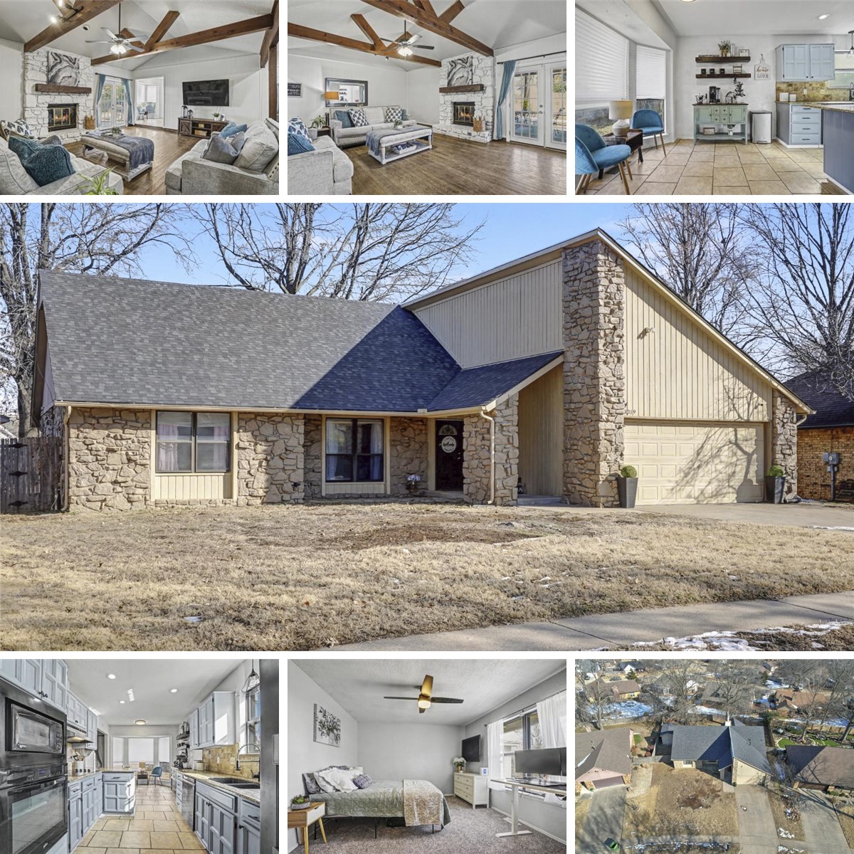 Location, location, location! This well-appointed 4-bedroom, 2-bath home in Bixby Schools is ideally situated in South Country Estates tucked away on a quiet street yet just steps from shopping and dining along Memorial. Inside, beautiful real wood floors and a vaulted living room ceiling create an impressive first impression, anchored by a stunning stone fireplace. The thoughtful layout is perfect for everyday living and entertaining, featuring a refreshed kitchen and a fully remodeled hall bathroom ideal for guests or kids. Home also has a concrete shed with electric for a private workshop & extra storage. Recent updates include a new roof, water heater & carpet, making this truly move-in ready. Enjoy the privacy and charm of a large lot with mature trees in a peaceful neighborhood, all with easy access to the Creek Turnpike and nearby amenities. Neighborhood Park and Tennis Courts are nearby. A fantastic opportunity to own in a prime Bixby school location.